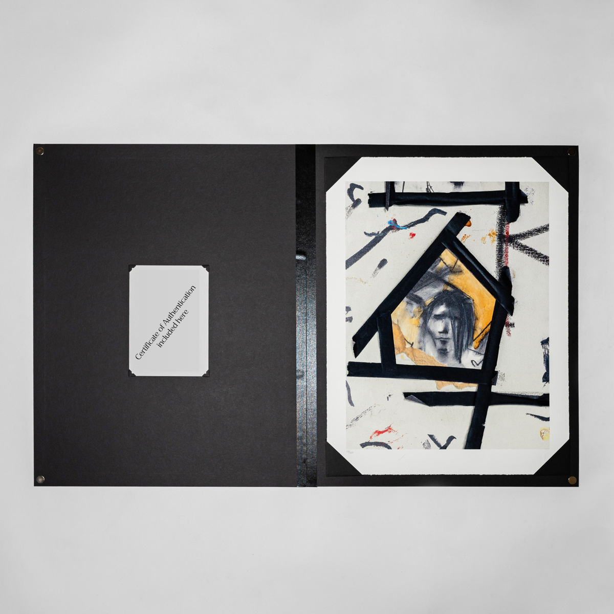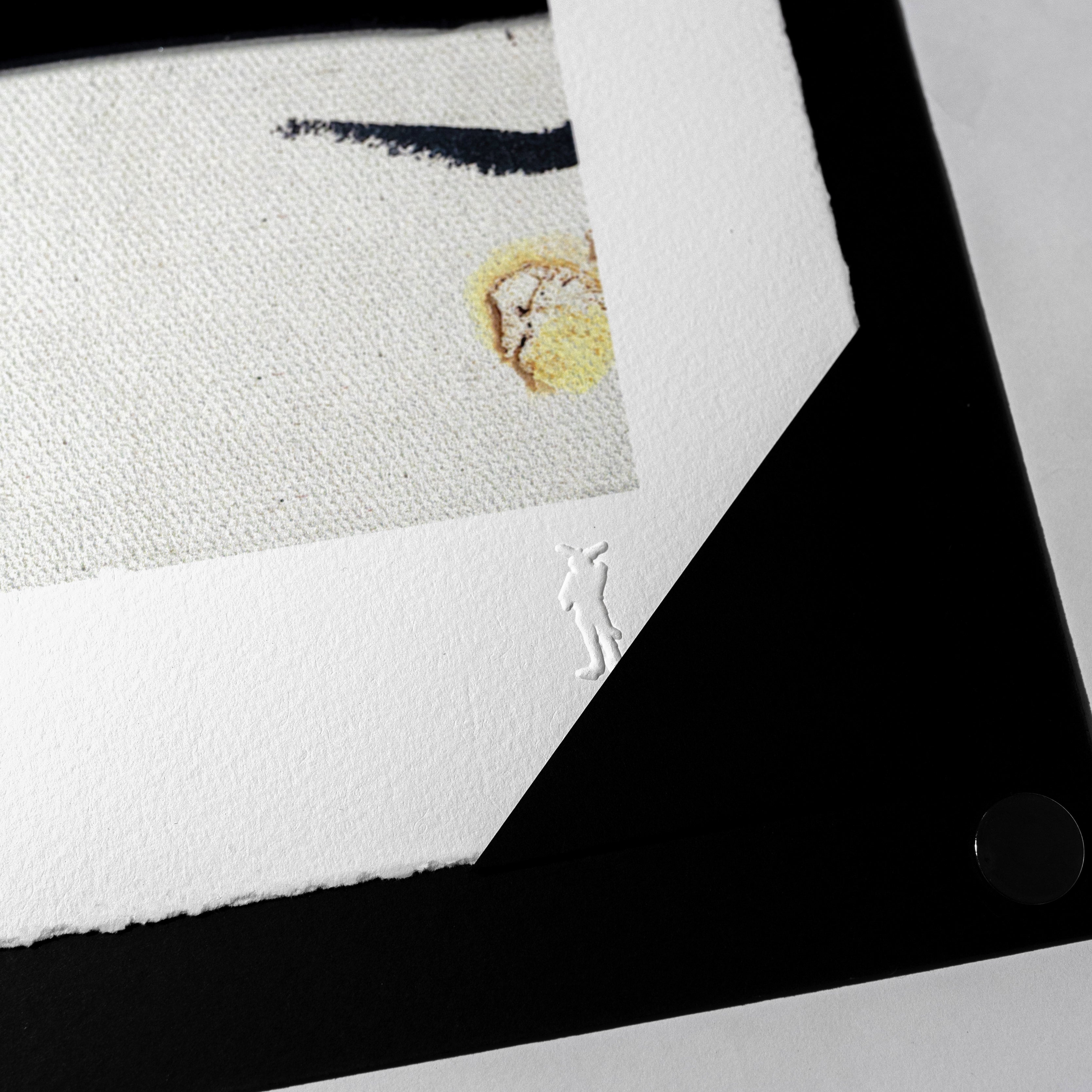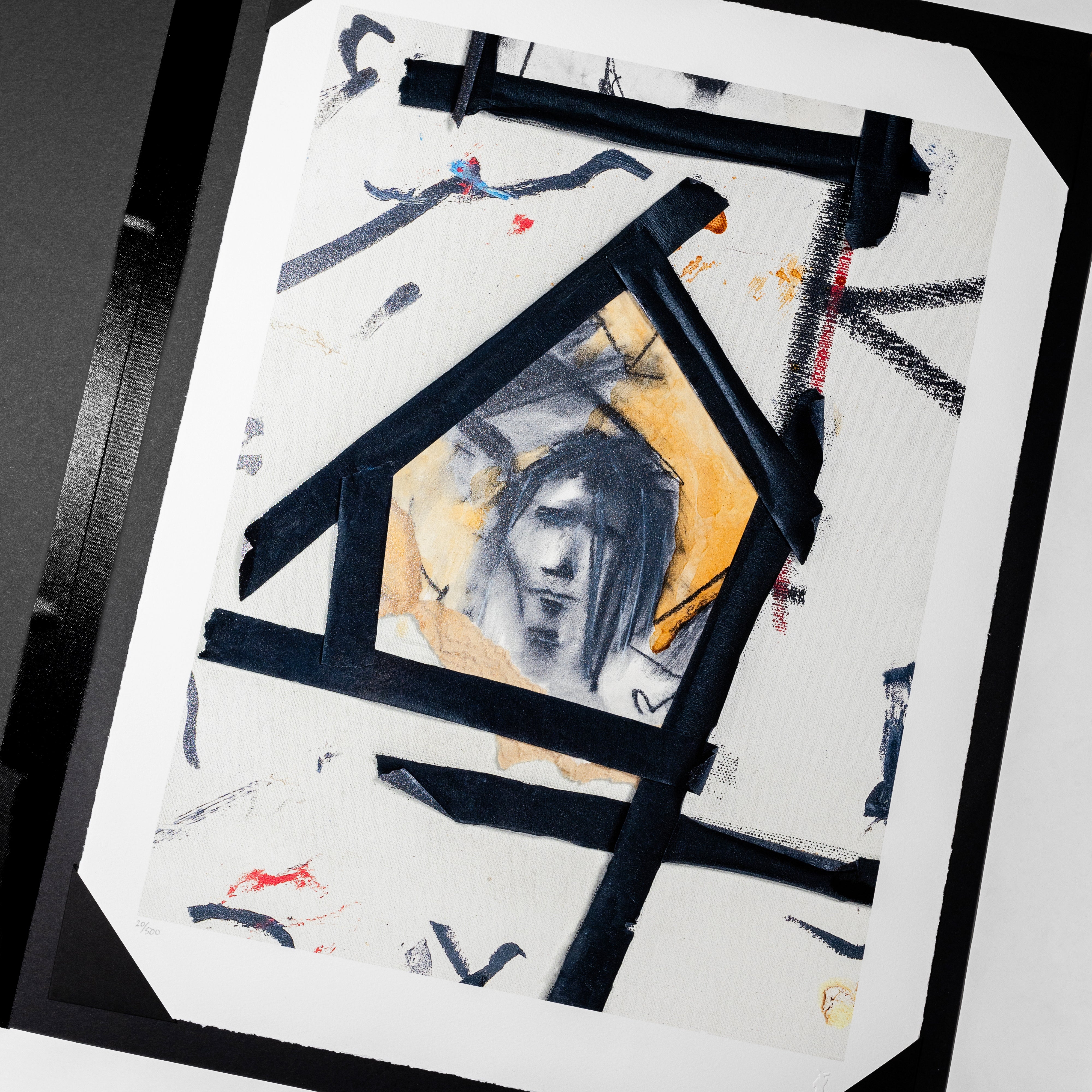 Printed on Somerset 300gsm 100% archival cotton rag paper with gloss varnish enhancing the black tape, this edition of 500 is emboss-stamped with Johnny’s personal seal, The Bunnyman. Each print is delivered in a bespoke portfolio, accompanied by a certificate of authenticity, making it a collectible piece of artistic storytelling.