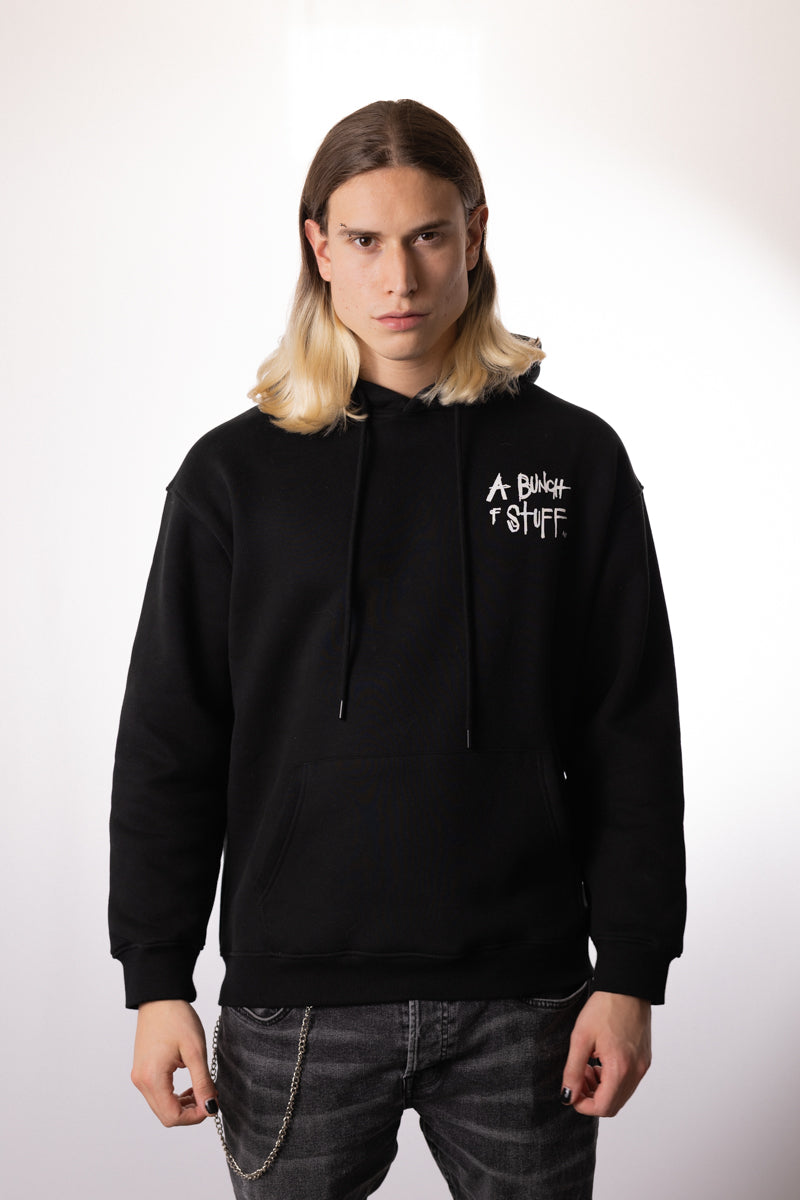 This black hoodie features a large back print of the “A Bunch Of Stuff” exhibition logo, based on Johnny Depp’s original sketch. It’s a straightforward, stylish way to celebrate Johnny Depp’s debut exhibition.