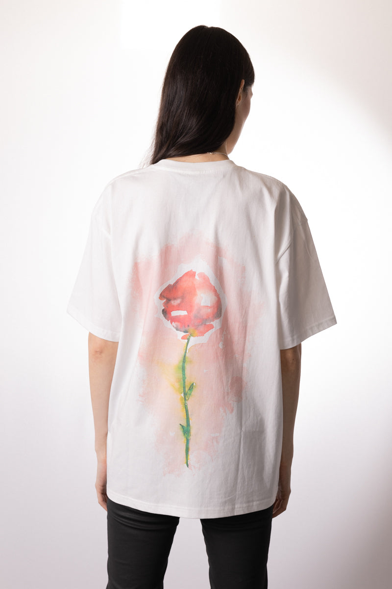 The Je T’Aime t-shirt features a rose back print and the words “Je T’Aime” (French for “I love you”) on the front. This design, inspired by Johnny Depp’s artwork, subtly conveys a coded affection through a single, almost calligraphic rose, reflecting the portraits of his daughter.