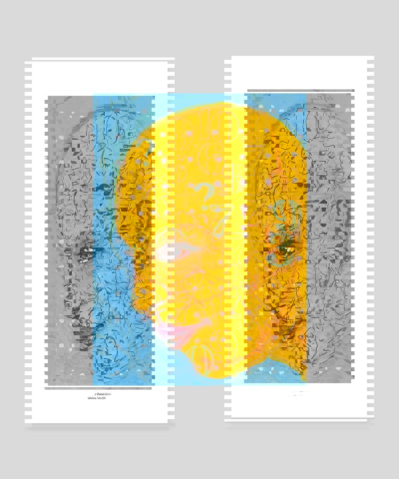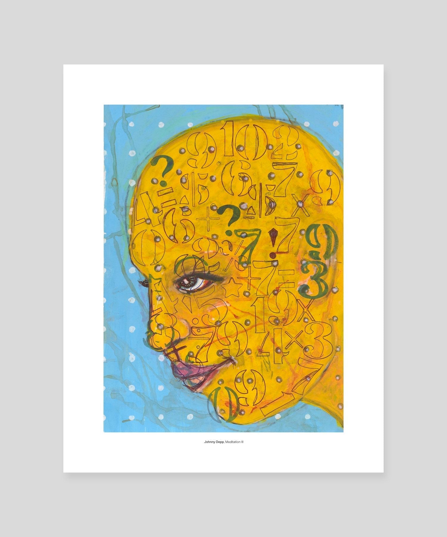 A mini print of the artwork Meditation II, portraying Johnny's much explored character The Everyman, a key theme in the exhibition.